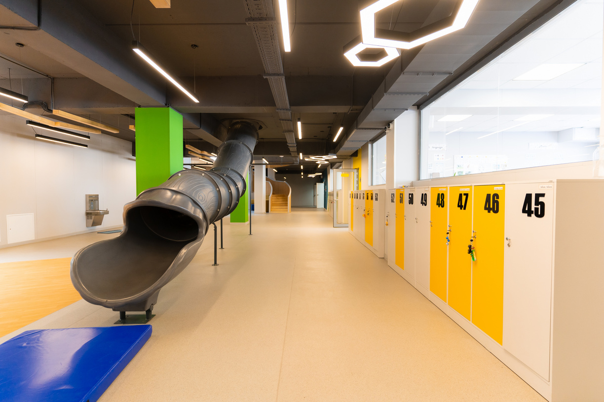 Үзіліс уақытында балалардың көңілін көтеру үшін сырғанақ орнатылды. Ол баспалдақтың орнына үстіңгі қабаттан төменгі қабатқа жылдам түсу үшін және көңілді ойындар үшін де қызмет етеді.