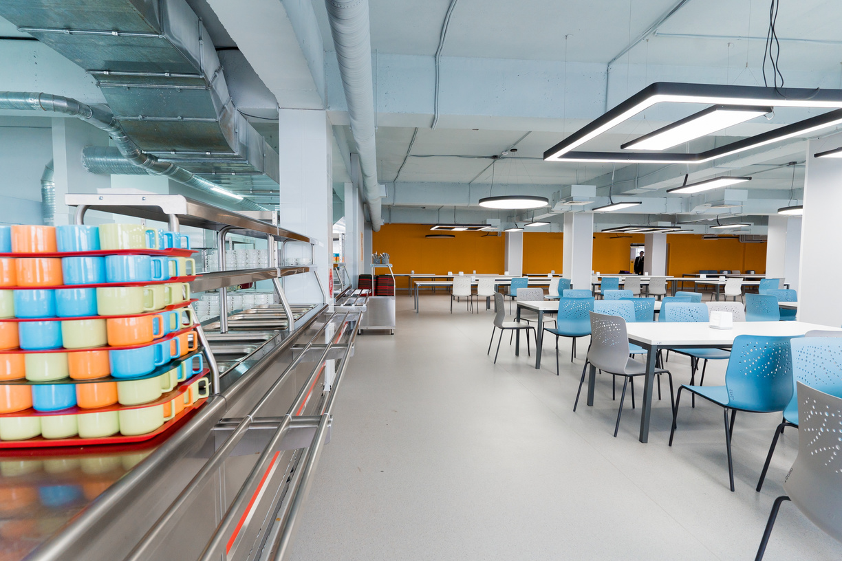 Асхана минималистік стильде жасалған, сондықтан оқушыларды тамақтану кезінде ештеңе алаңдатпайды.
